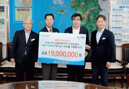 [NWS¹æ¼Û=Çѽ¸ñ ±âÀÚ]Ãæ³² º¸·É½Ã´Â ´ëÇü»êºÒ·Î ÇÇÇØ¸¦ º» ¿µ³²±Ç Áö¿ª ÁֹεéÀ» Áö¿øÇϱâ À§ÇØ 1,900¸¸ ¿øÀÇ ¼º±ÝÀ» ¸ð±ÝÇß´Ù°í 2ÀÏ ¹àÇû´Ù. º¸·É½Ã´Â Áö³­ 3¿ù 28ÀϺÎÅÍ 31ÀϱîÁö ÀÌÆ²°£ º¸·É½Ã Á÷¿ø ¹× º¸·É½ÃÀÇȸ Á÷¿øµéÀ» ´ë»óÀ¸·Î¡¦