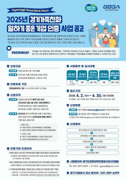 [»çȸ] °æ±âµµ, 2025³â '°¡Á·Ä£È­ ÀÏÇϱâ ÁÁÀº ±â¾÷' ÀÎÁõ Âü¿© ±â¾÷ ¸ðÁý |2025. 04.02