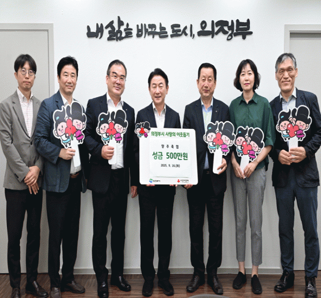 [NWS¹æ¼Û=Çѽ¸ñ ±âÀÚ]ÀÇÁ¤ºÎ½Ã´Â 9¿ù 16ÀÏ ¾çÁÖÃà»ê¾÷Çùµ¿Á¶ÇÕÀÌ ÀÇÁ¤ºÎ½ÃÁö¿ª¾Æµ¿¼¾ÅÍ¿¬ÇÕȸ Èñ¸Á»ç´Ù¸®¸¦ Áö¿øÇϱâ À§ÇØ ¼º±Ý 500¸¸ ¿øÀ» ±âºÎÇß´Ù°í ¹àÇû´Ù. À̳¯ ½ÃÀå½Ç¿¡¼­ ¿­¸° Àü´Þ½Ä¿¡´Â ÀÌÈı¤ Á¶ÇÕÀåÀ» ºñ·ÔÇÑ ÀÓÁ÷¿ø 5¸íÀÌ ¡¦