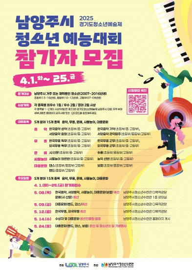 [NWS¹æ¼Û=Çѽ¸ñ ±âÀÚ]³²¾çÁֽô ¹®È­¿¹¼ú Àû Àç´É°ú °¨°¢ÀÌ ¶Ù¾î³­ û¼Ò³âÀ» ¹ß±¼Çϱâ À§ÇØ ¡®2025³â ³²¾çÁֽà û¼Ò³â ¿¹´É´ëȸ¡¯ÀÇ Âü°¡ÀÚ¸¦ ¸ðÁýÇÑ´Ù°í 1ÀÏ ¹àÇû´Ù. À̹ø ´ëȸ´Â û¼Ò³âÀÇ ´ÞÀ» ¸Â¾Æ ¿À´Â 5¿ù¿¡ °³ÃÖµÉ ¿¹Á¤À̸ç, Âü¡¦