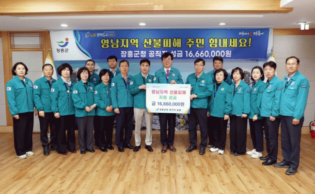 [NWS¹æ¼Û=Çѽ¸ñ ±âÀÚ]±è¼º ÀåÈﱺ¼ö¿Í ÀåÈﱺû Á÷¿øÀÌ ¿µ³² Áö¿ª »êºÒ ÇÇÇØ º¹±¸¿Í ÇÇÇØ ÁֹΠÁö¿øÀ» À§ÇØ ±¸È£ ¼º±Ý 1,666¸¸¿øÀ» ±âºÎÇß´Ù°í 1ÀÏ ¹àÇû´Ù. ±¸È£ ¼º±ÝÀº À̹ø »êºÒ·Î ÇÇÇØ°¡ Å« °æºÏ ÀǼº±º°ú û¼Û±ºÀÇ »çȸº¹Áö ¸ð±Ý°è¡¦
