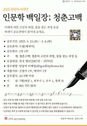 [»çȸ] ±¤¾çÁß¾Óµµ¼­°ü, 'Àι®ÇÐ ¹éÀÏÀå; ûÃá°í¹é' °ø¸ðÀü °³ÃÖ |2025. 04.01