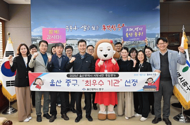 [NWS¹æ¼Û=Çѽ¸ñ ±âÀÚ]¿ï»ê Áß±¸°¡ ¿ï»ê±¤¿ª½Ã ÁÖ°ü ¡®2025³â Áö¹æ¼¼Á¤ ¿î¿µ Á¾ÇÕÆò°¡¡¯¿¡¼­ ÃÖ¿ì¼ö ±â°üÀ¸·Î ¼±Á¤µÆ´Ù. À̹ø ¼±Á¤À¸·Î Áß±¸´Â ±â°ü ǥâ°ú ÇÔ²² º¸Á¶±Ý 9,500¸¸ ¿øÀ» ¹Þ°Ô µÆ´Ù. ¿ï»ê½Ã´Â ¿ï»ê Áö¿ª 5°³ ±¸¡¤±ºÀ» ´ë»ó¡¦