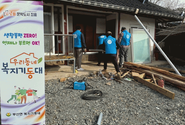 [NWS¹æ¼Û=Çѽ¸ñ ±âÀÚ]ÀåÈﱺ ºÎ»ê¸éÇàÁ¤º¹Áö¼¾ÅÍ´Â Áö³­ 28ÀÏ ¿ì¸®µ¿³× º¹Áö±âµ¿´ë »ç¾÷À¸·Î µ¶°Å ÁßÁõÀå¾ÖÀÎ ¾î¸£½ÅÀÇ ÆÄ¼ÕµÈ ¸¶·ç¸¦ ±ä±ÞÇÏ°Ô º¸¼öÇÏ¿© ¾ÈÀüÇÑ ÁÖ°Åȯ°æÀ» Á¦°øÇß´Ù°í ¹àÇû´Ù. ¿ì¸®µ¿³× º¹Áö±âµ¿´ë´Â ¹Î°ü Çù·ÂÀ» ±¸Ãࡦ