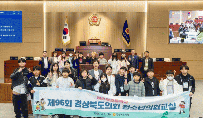 [NWS¹æ¼Û=Çѽ¸ñ ±âÀÚ]°æ»óºÏµµÀÇȸ´Â 4¿ù1ÀÏ µµÀÇȸ º»È¸ÀÇÀå¿¡¼­ ¹®°æ Á¡Ã̺ÏÃʵîÇб³ Çлý 23¸íÀÌ Âü¿©ÇÑ °¡¿îµ¥¡ºÁ¦96ȸ °æ»óºÏµµÀÇȸ û¼Ò³âÀÇȸ±³½Ç¡»À» °³ÃÖÇß´Ù. ¿ÃÇØ ù ½Ç½ÃÇÑ Ã»¼Ò³âÀÇȸ±³½Ç¿¡ Âü¿©ÇÑ ¹®°æ Á¡Ã̺ÏÃʵîÇб³¡¦