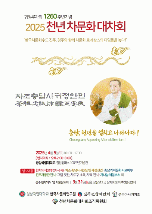 [NWS¹æ¼Û=Çѽ¸ñ ±âÀÚ]ÁøÁÖ¿Í °æÁÖ, µÎ µµ½Ã°¡ Çѱ¹ Â÷ ¹®È­ÀÇ ¹ßÀüÀ» À§ÇØ ¼ÕÀ» ¸ÂÀâ´Â´Ù. °æ»ó±¹¸³´ëÇб³ Çѱ¹Â÷¹®È­¿¬±¸¿øÀº ±ÍÁ¤·çÂ÷ȸ 1260Áֳ⠱â³ä ¡®2025 õ³âÂ÷¹®È­ ´ëÂ÷ȸ¡¯¸¦ 4¿ù 5ÀÏ Ä¥¾ÏÄ·ÆÛ½º 100Áֳ⠱â³ä°ü¿¡¼­ °³ÃÖÇÑ´Ù¡¦
