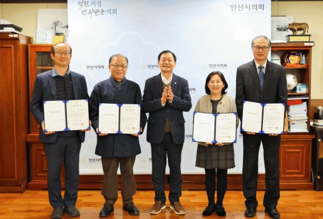 [NWS¹æ¼Û=Çѽ¸ñ ±âÀÚ]¾È»ê½ÃÀÇȸ°¡ 14ÀÏ ÀÇÀå½Ç¿¡¼­ ¾È»ê½ÃÀÇȸ ÀÇ¿ø ¿¬±¸´Üü ¿î¿µ ½ÉÀÇÀ§¿øÈ¸ ½Å±ÔÀ§¿ø À§Ã˽ÄÀ» °³ÃÖÇß´Ù. À̹ø À§ÃËÀº ¡®¾È»ê½ÃÀÇȸ ÀÇ¿ø ¿¬±¸´Üü ±¸¼º ¹× ¿î¿µ Á¶·Ê¡¯ °³Á¤¿¡ µû¶ó ½ÉÀÇÀ§¿øÈ¸¸¦ Àü¿ø ¹Î°£ Àü¹®°¡¡¦
