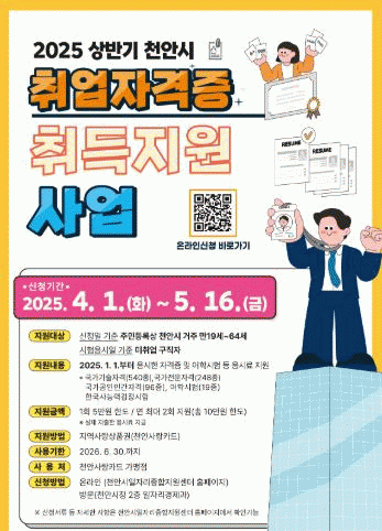 [»çȸ] õ¾È½Ã, ÀÚ°ÝÁõ ÀÀ½Ã·á Áö¿ø¡¦ ±¸Á÷ÀÚ °æÁ¦Àû ºÎ´ã ¿ÏÈ­ |2025. 04.01