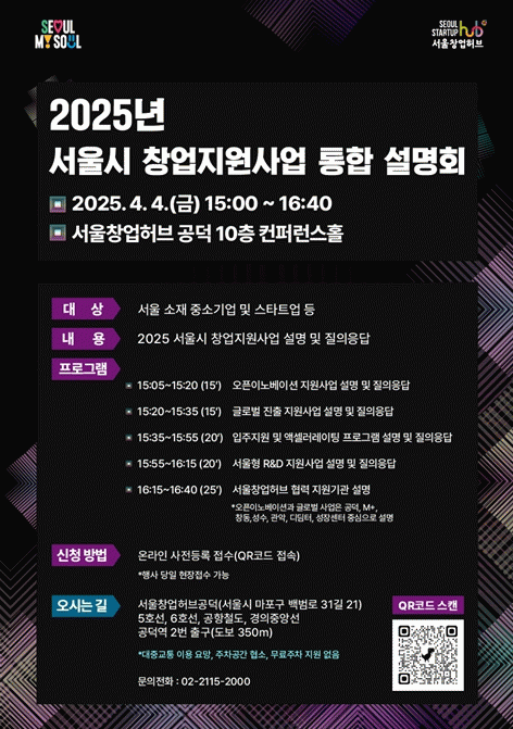 [°æÁ¦] â¾÷±â¾÷ Áö¿ø Á¤º¸ ÇÑÀÚ¸®¿¡¡¦¼­¿ï½Ã, 'â¾÷Áö¿ø»ç¾÷ ÅëÇÕ¼³¸íȸ' 4¿ù 4ÀÏ °³ÃÖ |2025. 04.01