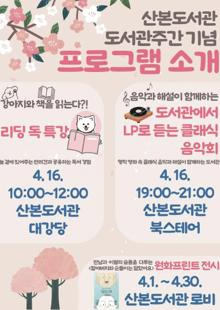 [NWS¹æ¼Û=Çѽ¸ñ ±âÀÚ]2025³â Á¦61ȸ µµ¼­°üÁÖ°£À» ¸ÂÀÌÇÏ¿© »êº»µµ¼­°ü¿¡¼­ ´Ù¾çÇÑ ¹®È­Çà»ç¸¦ ÁøÇàÇÑ´Ù. µµ¼­°üÁÖ°£Àº µµ¼­°ü¿¡ ´ëÇÑ ±¹¹ÎÀÇ ÀÌÇØ¿Í °ü½ÉÀ» ³ôÀ̰í ÀÌ¿ëÀ» ÃËÁøÇϱâ À§ÇÏ¿© 4¿ù 12ÀϺÎÅÍ 18ÀϱîÁö ¹ý·ü·Î ÁöÁ¤ÇÑ ±â°£ÀÌ¡¦
