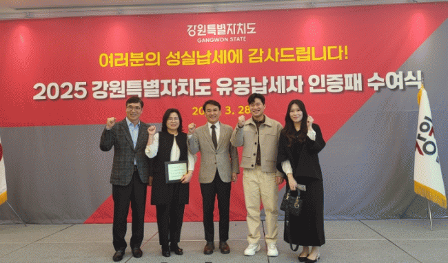 [»çȸ] ÅÂ¹é °í¿øÀ̾ؿ¡½º¢ß Àå¼ø´ö ´ëÇ¥, 2025 °­¿øÆ¯º°ÀÚÄ¡µµ Áö¹æ¼¼ À¯°ø³³¼¼ÀÚ¡¯ ÀÎÁõÆÐ ¼ö¿© |2025. 04.01