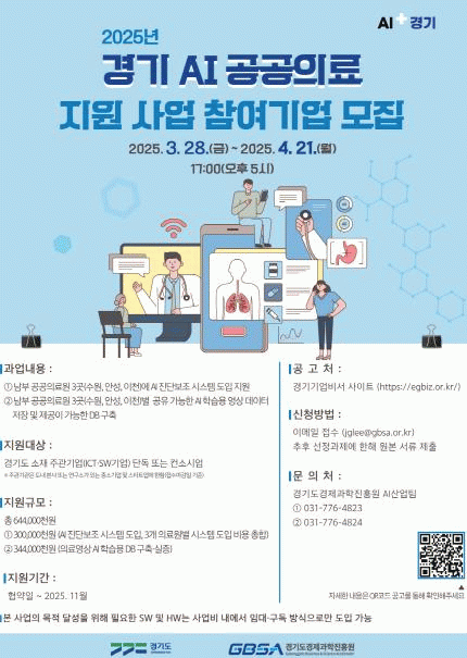 [NWS¹æ¼Û=Çѽ¸ñ ±âÀÚ]°æ±âµµ°¡ 21ÀϱîÁö ¡®2025³â °æ±â AI °ø°øÀÇ·á ½ÇÁõ Áö¿ø»ç¾÷¡¯¿¡ Âü¿©ÇÒ ±â¾÷À» ¸ðÁýÇÑ´Ù. ¡®°æ±â AI °ø°øÀÇ·á ½ÇÁõ¡¯Àº °ø°øÀÇ·á¿øÀÇ ¿µ»óÆÇµ¶ È¿À²À» ³ôÀÌ°í µµ¹ÎÀÌ º¸´Ù ½Å¼ÓÇϰí Á¤È®ÇÑ ÀÇ·á ¼­ºñ½º¸¦ ¹ÞÀ» ¼ö¡¦