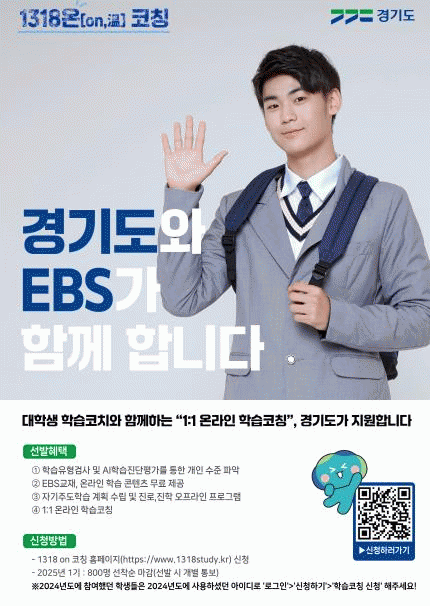 [»çȸ] °æ±âµµ, Áß¡¤°íµîÇлý ¹«·á 1:1 ÇнÀÄÚĪ Áö¿ø. '1318¿ÂÄÚĪ' 1±â ÇнÀÀÚ ¸ðÁý |2025. 04.01