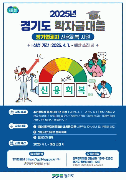 [NWS¹æ¼Û=Çѽ¸ñ ±âÀÚ]°æ±âµµ°¡ 4¿ù 1ÀϺÎÅÍ ¡®2025³â ÇÐÀڱݴëÃâ Àå±â¿¬Ã¼ÀÚ ½Å¿ëȸº¹ Áö¿ø¡¯ Á¢¼ö¸¦ ½ÃÀÛÇÑ´Ù. µµ´Â 6°³¿ù ÀÌ»ó ÇÐÀڱݴëÃâ Àå±â ¿¬Ã¼·Î ½Å¿ëµµÆÇ´ÜÁ¤º¸ µî·ÏÀÚ(±¸ ½Å¿ëºÒ·®ÀÚ)°¡ µÈ µµ¹ÎÀÇ ½Å¿ë ȸº¹À» Áö¿øÇϱâ À§ÇØ¡¦