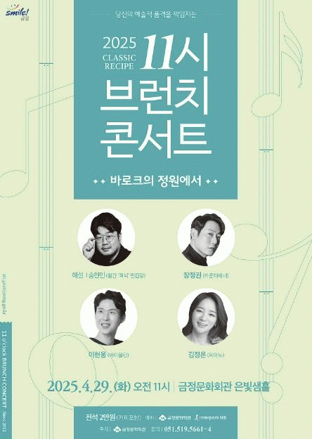 [NWS¹æ¼Û=Çѽ¸ñ ±âÀÚ]ºÎ»ê½Ã ±ÝÁ¤±¸´Â ±ÝÁ¤¹®È­È¸°ü Àººû»ùȦ¿¡¼­ ÆîÃÄÁú 4¿ùÀÇ ºê·±Ä¡ Äܼ­Æ®´Â º½ÀÇ ±â¿îÀ» ÇѲ¯ ´À³¥ ¼ö Àִ¡®¹Ù·ÎÅ©ÀÇ Á¤¿ø¿¡¼­¡¯¶ó´Â Çâ±ßÇÑ ÁÖÁ¦·Î 29ÀÏ ¿ÀÀü 11½Ã¿¡ °ü°´µéÀ» ã¾Æ¿Â´Ù°í ¹àÇû´Ù. À̹ø ºê·±Ä¡ ¡¦