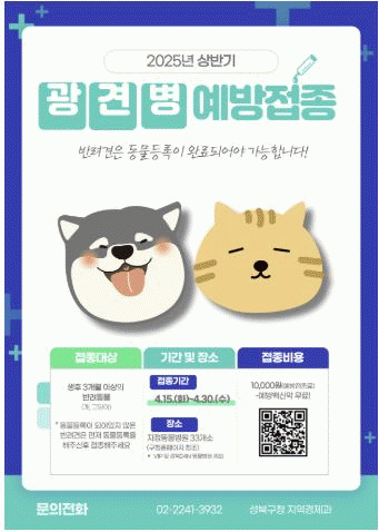 [NWS¹æ¼Û=Çѽ¸ñ ±âÀÚ]¼­¿ï ¼ººÏ±¸°¡ 4¿ù 15ÀϺÎÅÍ 30ÀϱîÁö º½Ã¶ ±¤°ßº´ ¿¹¹æÁ¢Á¾À» ½Ç½ÃÇÑ´Ù. ±¤°ßº´Àº °¨¿°µÈ µ¿¹°¿¡°Ô ¹°¸± °æ¿ì »ç¶÷¿¡°Ôµµ ÀüÆÄµÉ ¼ö ÀÖ´Â Ä¡¸íÀûÀÎ Àμö°øÅë°¨¿°º´À¸·Î, »ç¸Á·üÀÌ ¸Å¿ì ³ô´Ù. ÀÌ¿¡ µû¶ó, »ýÈÄ 3°³¡¦