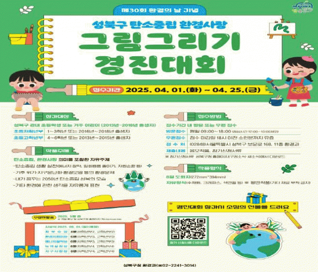 [NWS¹æ¼Û=Çѽ¸ñ ±âÀÚ]¼­¿ï ¼ººÏ±¸°¡ Á¦30ȸ ȯ°æÀÇ ³¯(6¿ù 5ÀÏ)À» ¸Â¾Æ 2025³â 'ź¼ÒÁ߸³ ȯ°æ»ç¶û ±×¸² ±×¸®±â °æÁø´ëȸ'¸¦ °³ÃÖÇÑ´Ù. À̹ø °æÁø´ëȸÀÇ ÁÖÁ¦´Â ¡®Åº¼ÒÁ߸³¡¯°ú ¡®È¯°æ»ç¶û¡¯À» Æ÷ÇÔÇÑ ÀÚÀ¯ ÁÖÁ¦·Î, ¡âź¼ÒÁ߸³ »ýȰ ½Ç¡¦