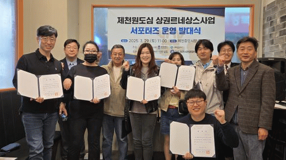 [NWS¹æ¼Û=Çѽ¸ñ ±âÀÚ]Á¦Ãµ½Ã¿¡¼­´Â Áö³­ 3¿ù 29ÀÏ Á¦Ãµ Áß¾Ó½ÃÀå °øÀ¯ÁÖ¹æ ¸ð¾ÆÇªµåÄÚÆ®¿¡¼­ (»ç)Á¦Ãµ½Ã°ü±¤ÇùÀÇȸ¿Í °øµ¿ÁÖ°üÀ¸·Î »ó±Ç¸£³×»ó½º»ç¾÷ ¼­Æ÷ÅÍÁî ¹ß´ë½ÄÀ» °³ÃÖÇß´Ù. ¼­Æ÷ÅÍÁî´Â ÃÑ 10¸íÀÌ ¼±Á¤µÆÀ¸¸ç ÀνºÅ¸±×·¥ ¹× ºí·Î¡¦