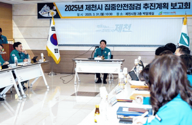 [NWS¹æ¼Û=Çѽ¸ñ ±âÀÚ]Á¦Ãµ½Ã´Â Áö³­ 3¿ù 31ÀÏ ±èâ±Ô Á¦Ãµ½ÃÀå ÁÖÀç·Î ¡®2025³â ÁýÁß¾ÈÀüÁ¡°Ë ÃßÁø°èȹ º¸°íȸ¡¯¸¦ °³ÃÖÇß´Ù. À̹ø º¸°íȸ¿¡¼­´Â 2025³âµµ ÁýÁß¾ÈÀüÁ¡°Ë ÃßÁø¿¡ ´ëÇÑ Á¡°Ë ½ÇÈ¿¼º È®º¸¿Í Çö¾È »çÇ×À» °øÀ¯Çϰí Á¡°Ë °á°ú¡¦
