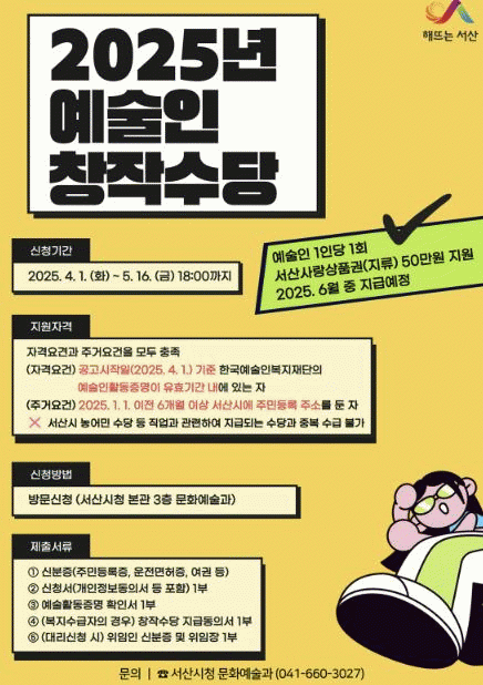 [»çȸ] ¼­»ê½Ã, Àü¹® ¿¹¼úÀΠâÀÛȰµ¿ '50¸¸ ¿ø Áö¿ø' |2025. 04.01