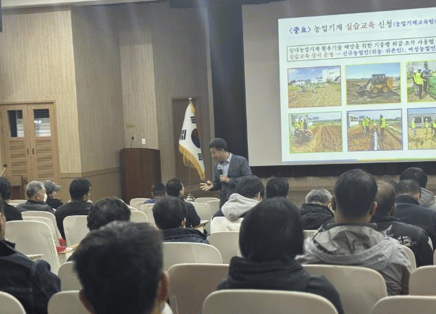 [NWS¹æ¼Û=Çѽ¸ñ ±âÀÚ]¾Æ»ê½Ã³ó¾÷±â¼ú¼¾ÅͰ¡ 30ÀÏ ³ó¾÷ÀÎ 60¸íÀ» ´ë»óÀ¸·Î ¡®ÁÖ¸»(ÈÞÀÏ) ³ó¾÷±â°è ¾ÈÀü±³À°¡¯À» ½ÃÇàÇß´Ù. À̹ø ±³À°Àº ÆòÀÏ ±³À° Âü¼®ÀÌ ¾î·Á¿î °â¾÷ ³ó¾÷Àΰú ±Í³óÀÎÀ» À§ÇØ ÁÖ¸»¿¡ ¸¶·ÃµÆÀ¸¸ç ¡ã³ó¾÷±â°è ÀÓ´ë»ç¾÷ ¾È¡¦