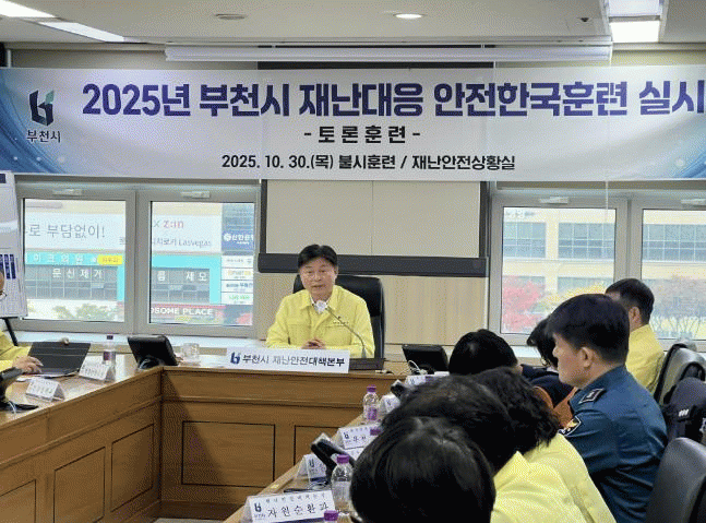 [NWS¹æ¼Û=Çѽ¸ñ ±âÀÚ]ºÎõ½Ã´Â 10¿ù 30ÀÏ ºÎõüÀ°°ü°ú ½Ã Àç³­¾ÈÀü»óȲ½Ç¿¡¼­ ¡®2025³â Àç³­´ëÀÀ ¾ÈÀüÇѱ¹ÈƷá¯À» ½Ç½ÃÇß´Ù. À̹ø ÈÆ·ÃÀº ¡®Àç³­ ¹× ¾ÈÀü°ü¸® ±âº»¹ý¡¯ Á¦35Á¶¿¡ µû¸¥ ¹ýÁ¤ÈÆ·ÃÀ¸·Î, º¹ÇÕÀç³­ »óȲ¿¡ ´ëºñÇÑ °ü°è±â°ü ¡¦