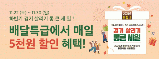 [NWS¹æ¼Û=Çѽ¸ñ ±âÀÚ]°æ±âµµ °ø°ø¹è´Þ¾Û ¹è´ÞƯ±ÞÀÌ 2025³â ÇϹݱ⠰æ±â»ì¸®±â ¡®Åë Å« ¼¼ÀÏ¡¯¿¡ ÇÕ·ùÇÑ´Ù. °æ±âµµÁÖ½Äȸ»ç´Â ¿À´Â 30ÀÏ ÀÏ¿äÀϱîÁö ¹è´ÞƯ±Þ Àüü ȸ¿øÀ» ´ë»óÀ¸·Î ¹è´ÞƯ±Þ ÀÔÁ¡ °¡¸ÍÁ¡¿¡¼­ »ç¿ëÇÒ ¼ö ÀÖ´Â 5õ¿ø ÇÒÀΡ¦