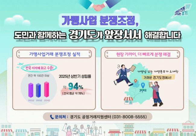 [NWS¹æ¼Û=Çѽ¸ñ ±âÀÚ]°æ±âµµ°¡ °¡¸Í»ç¾÷°Å·¡ ºÐÀïÁ¶Á¤¿¡¼­ Á¶Á¤ ÀýÂ÷¸¦ ÅëÇØ ÇÕÀÇ¿¡ µµ´ÞÇÑ ºñÀ²ÀÌ ¿Ã »ó¹Ý±â 94%¿¡ À̸£´Â µî Àü±¹ ÃÖ°íÀÇ ¼º°ú¸¦ ³»°í ÀÖ´Ù. Áö³­ 11ÀÏ °³ÃÖµÈ ¡®2025³â »ó¹Ý±â °øÁ¤°Å·¡À§¿øÈ¸-Áö¹æÀÚÄ¡´Üü °£ ¼º°ú ¡¦