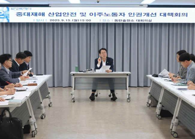 [NWS¹æ¼Û=Çѽ¸ñ ±âÀÚ]Á¤¸í±Ù È­¼ºÆ¯·Ê½ÃÀåÀº 15ÀÏ µ¿ÅºÃâÀå¼Ò ´ëȸÀǽǿ¡¼­ ¡®Áß´ëÀçÇØ »ê¾÷¾ÈÀü ¹× ÀÌÁֳ뵿ÀÚ Àαǰ³¼± ´ëÃ¥ ȸÀÇ¡¯¸¦ ¿­°í ¾ÈÀüÇÏ°í °øÁ¤ÇÑ ³ëµ¿ ȯ°æ Á¶¼ºÀ» À§ÇÑ ¹æ¾ÈÀ» ³íÀÇÇß´Ù. À̳¯ Á¤ ½ÃÀåÀº ¡°¿Ü±¹ÀÎ ±Ù·ÎÀÚ¡¦
