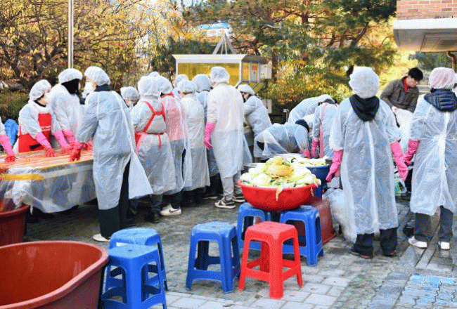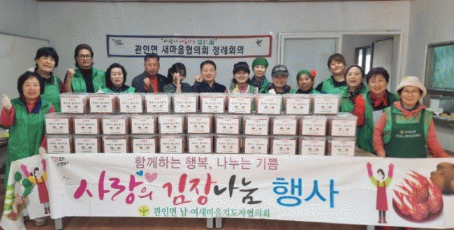 [NWS¹æ¼Û=Çѽ¸ñ ±âÀÚ]Æ÷õ½Ã °üÀÎ¸é »õ¸¶À»ºÎ³àȸ´Â Áö³­ 19ÀÏ °üÀα³È¸¿¡¼­ Áö¿ª ³» Ãë¾à°èÃþ ÀÌ¿ôµé¿¡°Ô µû¶æÇÑ ¿ÂÁ¤À» ÀüÇϱâ À§ÇÑ ±èÀå±èÄ¡ ³ª´® Çà»ç¸¦ ÁøÇàÇß´Ù. »õ¸¶À»ºÎ³àȸ ȸ¿øµéÀº Á¤¼º²¯ ±èÄ¡¸¦ ´ã°¡ °ü³» Ãë¾à°èÃþ¿¡ Àü´Þ¡¦