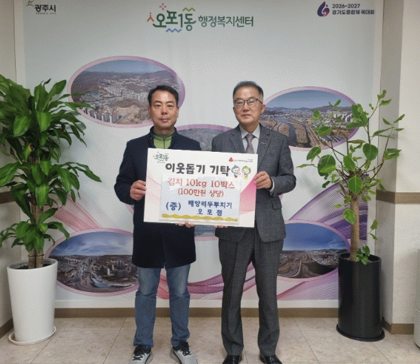 [NWS¹æ¼Û=Çѽ¸ñ ±âÀÚ]±¤Áֽà ¿ÀÆ÷1µ¿¿¡ À§Ä¡ÇÑ ¹è¾ç¸® µÎ¸®Ä¡±â ¿ÀÆ÷Á¡ ÇÑ¿ëÈ£ ´ëÇ¥´Â 20ÀÏ Áö¿ªÀÇ ¾î·Á¿î ÀÌ¿ôÀ» À§ÇØ ±èÄ¡ 10¹Ú½º(10§¸, 100¸¸ ¿ø »ó´ç)¸¦ ¿ÀÆ÷1µ¿ ÇàÁ¤º¹Áö¼¾ÅÍ¿¡ ±âŹÇß´Ù. À̳¯ Àü´Þ½Ä¿¡ Âü¼®ÇÑ ÇÑ ´ëÇ¥´Â ¡°¹°°¡¡¦