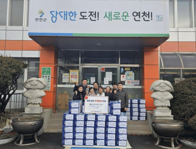 [NWS¹æ¼Û=Çѽ¸ñ ±âÀÚ]ÆÄÁÖ¿¬ÃµÃàÇù ¿¬Ãµ Çѿ츮ȸ´Â Áö³­ 11ÀÏ ¿¬ÃµÀ¾ÇàÁ¤º¹Áö¼¾Å͸¦ ¹æ¹®ÇØ °ü³» Àú¼Òµæ Ãë¾à°èÃþÀ» À§ÇÑ ±è 100¹Ú½º¸¦ Àü´ÞÇß´Ù. À̹ø ±âºÎ ¹°Ç°Àº °Ü¿ïö Ãë¾à°èÃþÀÇ ½Ä»ýȰ Áö¿øÀ» À§ÇØ ¸¶·ÃµÆÀ¸¸ç, ¿¬ÃµÀ¾ Áö¿ª»çȸ¡¦