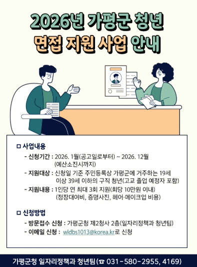 [°æÁ¦] °¡Æò±º, û³âÃë¾÷ ¸éÁ¢ ºñ¿ë ºÎ´ã ´ú¾îÁØ´Ù |2026. 01.06