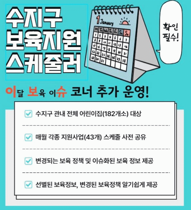 [NWS¹æ¼Û=Çѽ¸ñ ±âÀÚ]¿ëÀÎÆ¯·Ê½Ã ¼öÁö±¸´Â º¸À° Á¤Ã¥ µîÀ» ¾Ë±â ½±°Ô Á¤¸®ÇÑ ¡®º¸À°Áö¿ø ½ºÄÉÁÙ·¯¡¯¿¡ ÀÌ´Þ º¸À° À̽´ Ç׸ñÀ» ½Å¼³Çß´Ù°í 15ÀÏ ¹àÇû´Ù. ±¸´Â »ç¾÷º° ½Åû¡¤Á¤»ê ½Ã±â°¡ ´Þ¶ó ½Åû ¿À·ù, ´©¶ô µîÀÇ ¹Î¿øÀÌ ºó¹øÇÔ¿¡ µû¶ó¡¦