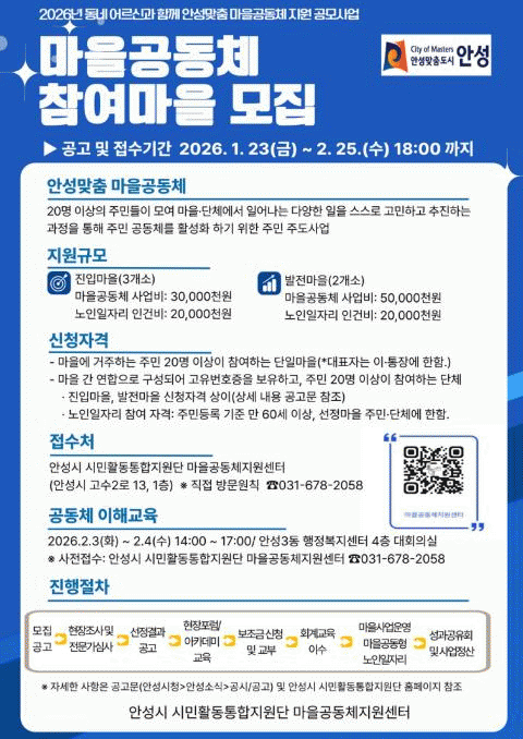[»çȸ] 2026³â ¾È¼º½Ã ¸¶À»°øµ¿Ã¼¡¤½Ã¹Îµ¿¾Æ¸® °ø¸ð»ç¾÷ ÃßÁø |2026. 01.26