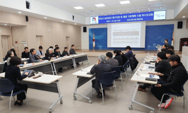 [NWS¹æ¼Û=Çѽ¸ñ ±âÀÚ]¾È¼º½Ã´Â 1¿ù 23ÀÏ ½Ãû º»°ü 4Ãþ ȸÀǽǿ¡¼­ ³óÃÌÀÇ Ã¼°èÀûÀÎ °ø°£ °ü¸®¿Í Áö¼Ó °¡´ÉÇÑ ¹ßÀüÀ» À§ÇÑ '³óÃ̰ø°£ À籸Á¶È­ ¹× Àç»ý ±âº»°èȹ ¼ö¸³' Âø¼öº¸°íȸ¸¦ °³ÃÖÇß´Ù. À̹ø '³óÃ̰ø°£ À籸Á¶È­ ¹× Àç»ý ±âº»°è¡¦
