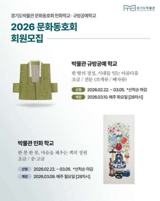 [»çȸ] °æ±âµµ¹Ú¹°°ü, ¹®È­µ¿È£È¸ '¹Ú¹°°ü ¹ÎÈ­Çб³¡¤±Ô¹æ°ø¿¹Çб³' ȸ¿ø¸ðÁý...3¿ù °³°­ |2026. 02.20