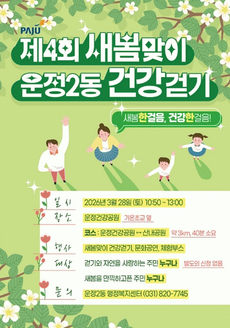 [»çȸ] ÆÄÁֽà ¿îÁ¤2µ¿, Á¦4ȸ »õº½¸ÂÀÌ °Ç°­°È±â °³ÃÖ |2026. 03.23