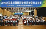 사회 =한승목 기자2026. 04.20[NWS방송=한승목 기자]파주시는 (재)파주시행복장학회가 지난 18일 파주시 평생학습관 대공연장에서 학부모와 장학생 등 200여 명이 참석한 가운데 2026년 장학증서 수여식을 개최했다고 밝혔다. 이날 행사에서는 장학생과 학부모 등 200여 명이 참석해 학생들의 노력과 성취를 함께 축하하며 새로운 출발을 응원했다. 올해 행복장학회는 지역 사회의 다양한 수요를 반영해 ▲우수 ▲희망 ▲재능 ▲국가유공자 후손 ▲북한이탈주민 자녀 ▲다문화가정 자녀 ▲근로자 자녀 ▲지산학 등 총 8개 분야에서 192명의 장학생을 선발했다. 이들에게는 총...