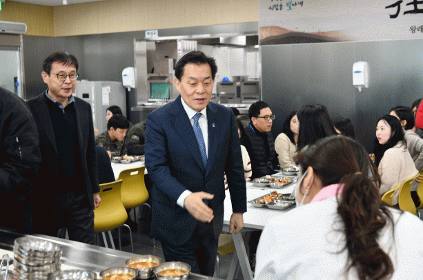 [NWS¹æ¼Û=Çѽ¸ñ ±âÀÚ]¼ö¿øÆ¯·Ê½Ã ¿µÅ뱸´Â Áö³­ 5ÀÏ, ÀÌÀçÁØ ½ÃÀåÀÌ ¿µÅ뱸ûÀ» ¹æ¹®ÇØ Á÷¿øµé°ú ÇÔ²²ÇÏ´Â °Ý·Á ¿ÀÂù ÀÚ¸®¸¦ °¡Á³´Ù°í ¹àÇû´Ù. À̹ø Çà»ç´Â ±¸³»½Ä´ç¡®¿µÅëÁ¤´ã¡¯¿¡¼­ Á÷¿ø 110¿© ¸í°ú ¿ÀÂùÀ» ÇÔ²²ÇÑ µÚ, Â÷´ãÀ» ³ª´©´Â¡¦