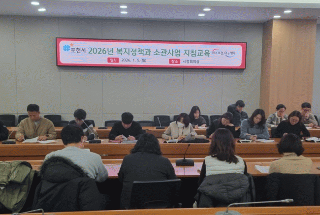 [NWS¹æ¼Û=Çѽ¸ñ ±âÀÚ]Æ÷õ½Ã´Â Áö³­ 5ÀÏ ½Ãû ½ÃÁ¤È¸Àǽǿ¡¼­ 14°³ À¾¸éµ¿ »çȸº¹Áö ¾÷¹«´ã´çÀÚ 62¸íÀ» ´ë»óÀ¸·Î ¡®2026³â º¹ÁöÁ¤Ã¥°ú ¼Ò°ü»ç¾÷ ½Å¼³ ¹× °³Á¤»çÇ× Áöħ±³À°¡¯À» ½Ç½ÃÇß´Ù. À̹ø ±³À°Àº 2026³âºÎÅÍ ½ÃÇàµÇ´Â º¹Áö»ç¾÷ÀÇ ¡¦