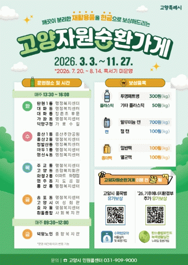 [»çȸ] °í¾ç½Ã, ¡®°í¾ç ÀÚ¿ø¼øÈ¯°¡°Ô¡¯ 3¿ù 3ÀÏ ¿î¿µ ½ÃÀÛ |2026. 02.27