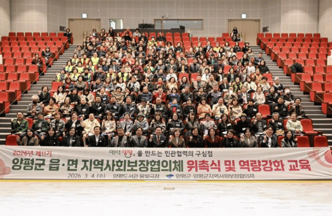 [NWS¹æ¼Û=Çѽ¸ñ ±âÀÚ]¾çÆò±ºÀº Áö³­ 4ÀÏ ¾çÆòµµ¼­°ü ¹°ºû±ØÀå¿¡¼­ 250¿© ¸íÀÌ Âü¼®ÇÑ °¡¿îµ¥ ¡®2026³â Á¦11±â À¾¸é Áö¿ª»çȸº¸ÀåÇùÀÇü À§ÃË½Ä ¹× ¿ª·® °­È­ ±³À°¡¯À» °³ÃÖÇϰí, Áö¿ª ¸ÂÃãÇü º¹Áö¾ÈÀü¸Á °­È­¸¦ À§ÇÑ º»°ÝÀûÀΠȰµ¿¿¡ µé¡¦