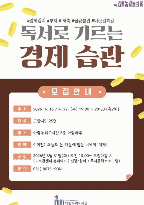 [»çȸ] °í¾ç½Ã ¾Æ¶÷´©¸®µµ¼­°ü, 'µ¶¼­·Î ±â¸£´Â °æÁ¦ ½À°ü' ÇÁ·Î±×·¥ ¿î¿µ |2026. 03.16