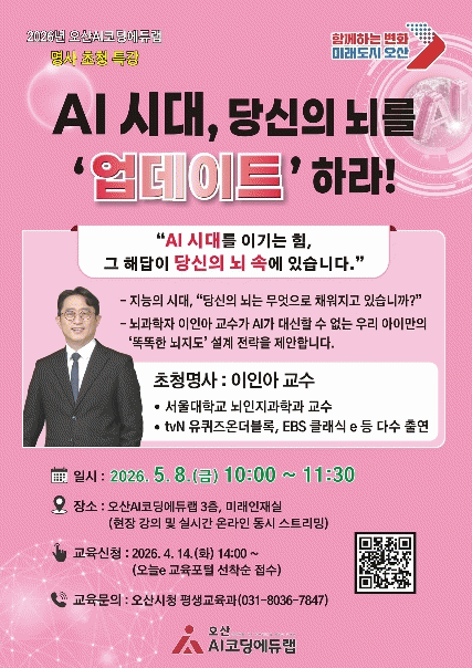 [»çȸ] ¿À»ê½Ã, 'AI½Ã´ë, ´ç½ÅÀÇ ³ú¸¦ '¾÷µ¥ÀÌÆ®' Ç϶ó!' ¼­¿ï´ë ÀÌÀÎ¾Æ ±³¼ö ÃÊû Ư°­ °³ÃÖ |2026. 04.13