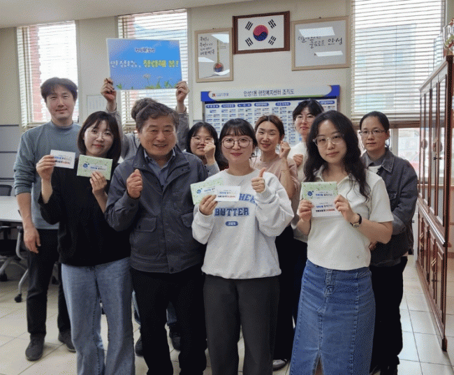 [NWS¹æ¼Û=Çѽ¸ñ ±âÀÚ]¾È¼º½Ã ¾È¼º1µ¿Àº Áö³­ 4¿ù 17ÀÏ Á¡½É½Ã°£À» Ȱ¿ëÇÏ¿© Á÷¿øµéÀ» ´ë»óÀ¸·Î 'ã°í, °øÀ¯Çϰí, ½ÇõÇϴ û·Å! ¡°Ã»·Åº¸¹°¡± ã±â' Çà»ç¸¦ °³ÃÖÇß´Ù°í ¹àÇû´Ù. À̹ø Çà»ç´Â ¡®Ã»·ÅÇØ º½¡¯ Ä·ÆäÀÎÀÇ ÀÏȯÀ¸·Î ¸¶·ÃµÆ´Ù¡¦