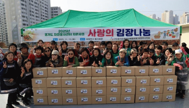 [NWS¹æ¼Û=Çѽ¸ñ ±âÀÚ]ÀÇÁ¤ºÎ½Ã´Â (»ç)°æ±âµµ¿©¼º´ÜüÇùÀÇȸ ÀÇÁ¤ºÎ½ÃÁöȸ°¡ 11¿ù 12ÀÏ ÀÇÁ¤ºÎ½ÃºÀ»çȸ°ü¿¡¼­ »ç¶û³ª´® ±èÀå´ã±×±â Çà»ç¸¦ °³ÃÖÇß´Ù°í ¹àÇû´Ù. À̹ø Çà»ç´Â °æ±âµµ ±èÀå Áö¿ø °ø¸ð»ç¾÷¿¡ ¼±Á¤µÅ 600¸¸ ¿øÀÇ Áö¿øÀ» ¹Þ¾Æ¡¦
