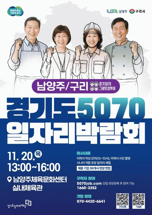 [»çȸ] ÁßÀå³âÀÇ ³»ÀÏÀ» ½ÃÀÛÇÏ´Â '°æ±âµµ 5070 ÀÏÀÚ¸®¹Ú¶÷ȸ' ³²¾çÁÖ¸¦ ã½À´Ï´Ù! |2025. 11.12