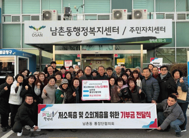 [»çȸ] ¿À»ê½Ã ³²Ã̵¿ ÅëÀåÇùÀÇȸ, Àú¼ÒµæÃþ Áö¿ø À§ÇØ ¼º±Ý 300¸¸ ¿ø ±âŹ |2025. 12.12