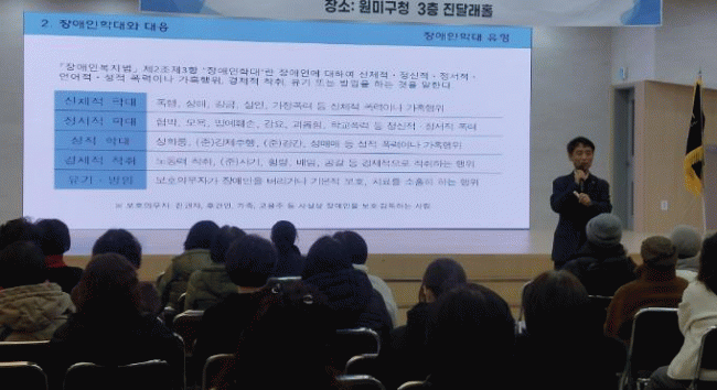 [NWS¹æ¼Û=Çѽ¸ñ ±âÀÚ]ºÎõ½Ã´Â Áö³­ 3ÀÏ ºÎõ½ÃÀå¾ÖÀÎÀαǼ¾ÅÍ¿Í ÇÔ²² ¿ø¹Ì±¸Ã» Áø´Þ·¡È¦¿¡¼­ ¢ßÇÞºû³ª´® ¼Ò¼Ó Ȱµ¿Áö¿ø»ç 200¿© ¸íÀ» ´ë»óÀ¸·Î ¡®Àå¾ÖÀÎȰµ¿Áö¿ø»ç¿Í Àå¾ÖÀÎ Àαǡ¯À» ÁÖÁ¦·Î ±³À°À» ½Ç½ÃÇß´Ù. Àå¾ÖÀÎȰµ¿Áö¿ø»ç´Â Àå¾Ö¡¦